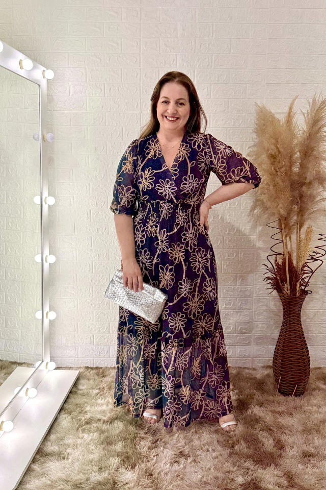 Para quem valoriza elegância e sofisticação em cada detalhe, o Vestido Longo em Tule Monalisa é a escolha perfeita para momentos especiais. Confeccionado em tule delicado, estampado lindamente simulando um bordado, este vestido apresenta um barrado maria, que confere movimento e leveza ao caimento.